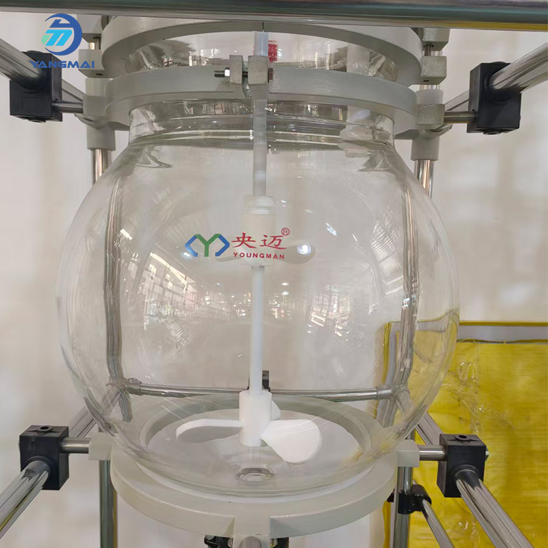 Recipiente de vidrio de borosilicato de una sola capa de 50 litros: Fabricado con vidrio de borosilicato de alta calidad, lo que garantiza una excelente resistencia química y una visibilidad nítida durante las reacciones.