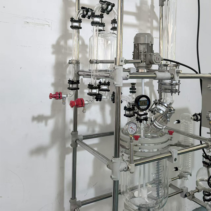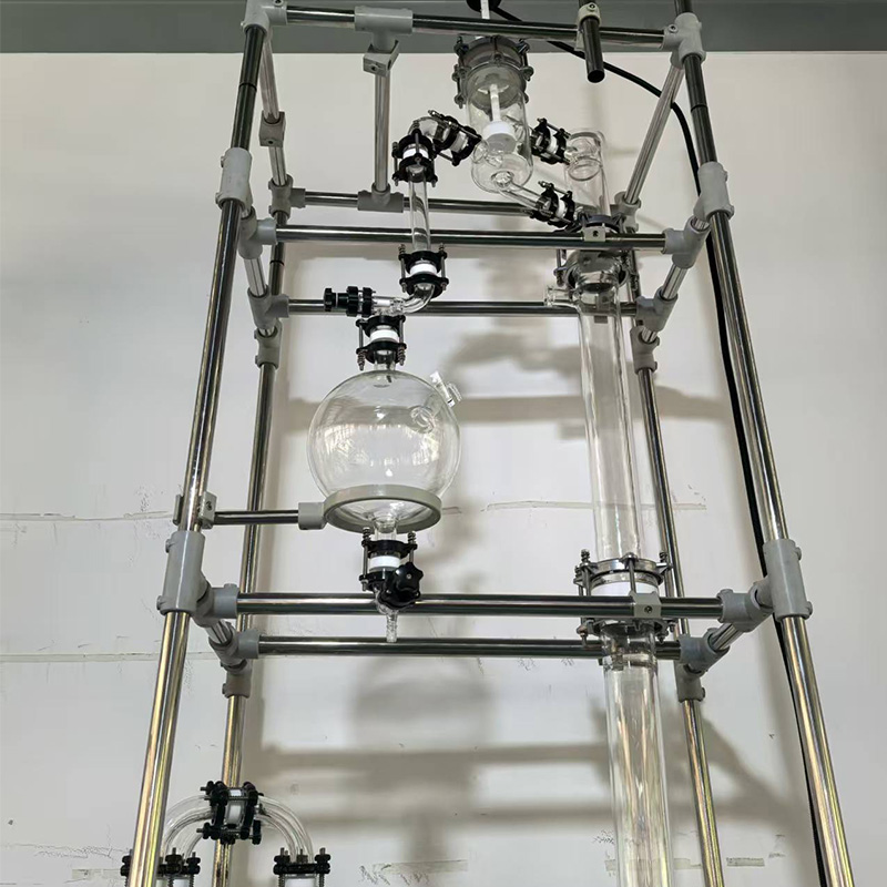 Estructura de borosilicato de doble capa – El cuerpo del reactor está hecho de vidrio de borosilicato resistente a la corrosión, lo que proporciona una visibilidad clara y un rendimiento térmico estable para tareas de destilación de alta precisión.