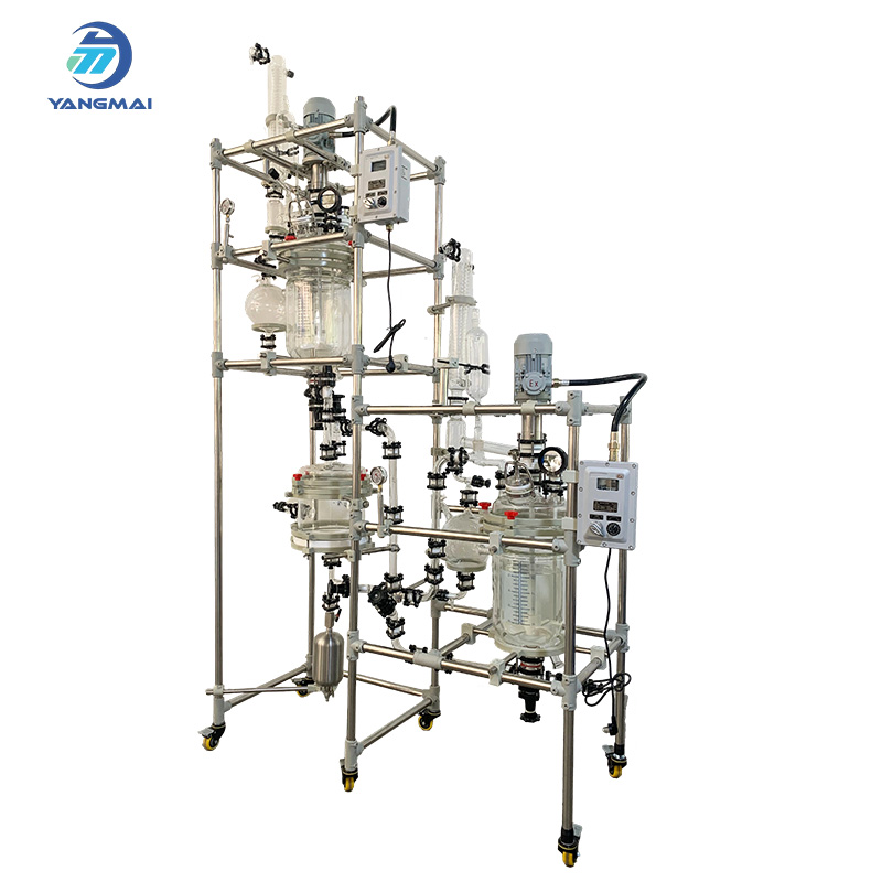 El reactor de vidrio encamisado personalizado de 10 l El sistema de Hefei Yangmai Technology Instrument Co., Ltd. está diseñado para síntesis química, cristalización y reacciones con solventes que requieren un control térmico preciso. Junto con un tanque de compensación de 5 L, permite la alimentación continua o gradual del material, manteniendo estable la presión y el caudal de reacción, lo que mejora la consistencia y la seguridad del proceso.